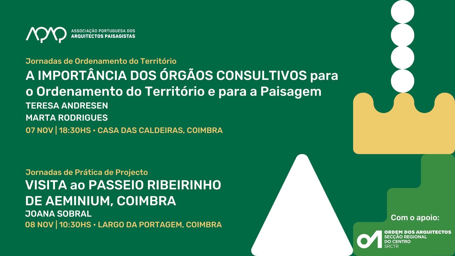 Jornadas de Ordenamento do Território: 4ª sessão A IMPORTÂNCIA DOS ÓRGÃOS CONSULTIVOS para o Ordenamento do Território e para a Paisagem Com Teresa Andresen e Marta Rodrigues 07 nov | 18hs30 • Casa das [...]