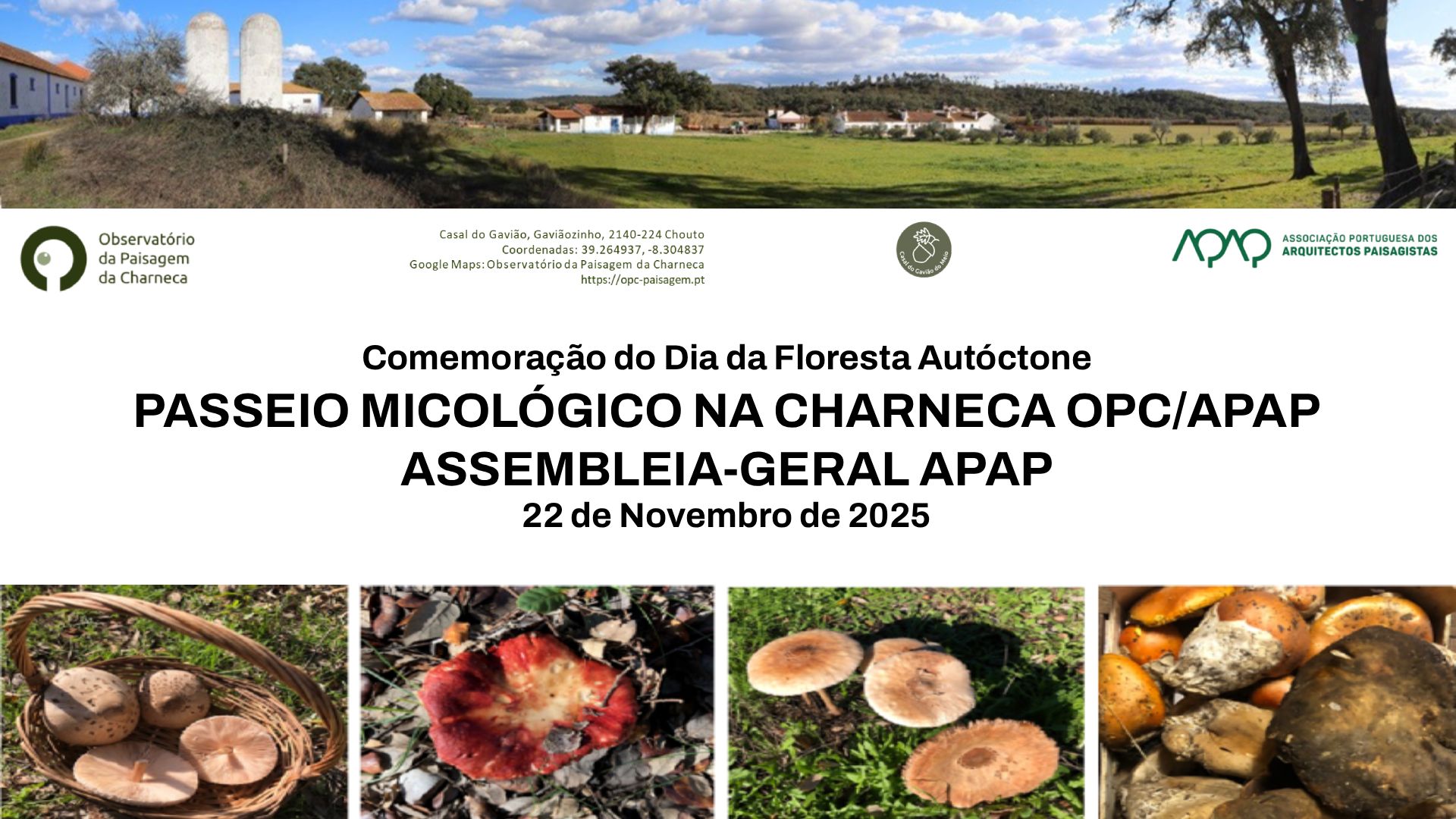 Passeio Micológico 22 de Novembro de 2025, organizado pelo Observatório da Paisagem da Charneca (OPC) e APAP, para comemoração do Dia da Floresta Autóctone (23/11) e realização da Assembleia Geral da APAP Neste passeio [...]